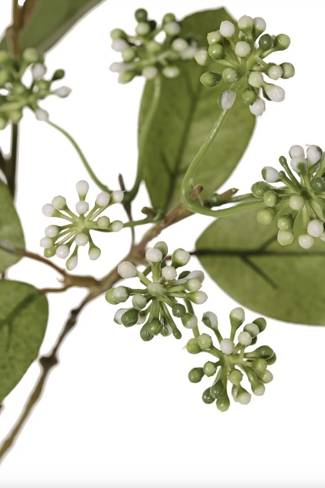 Deze bessentak is toch perfect voor in de herfst? We hebben hem ook nog in verschillende kleuren waardoor hij in ieder boeket past! De tak heeft groen met witte besjes. De hoogte is 70 cm. De tak word ook wel schoenknop genoemd.