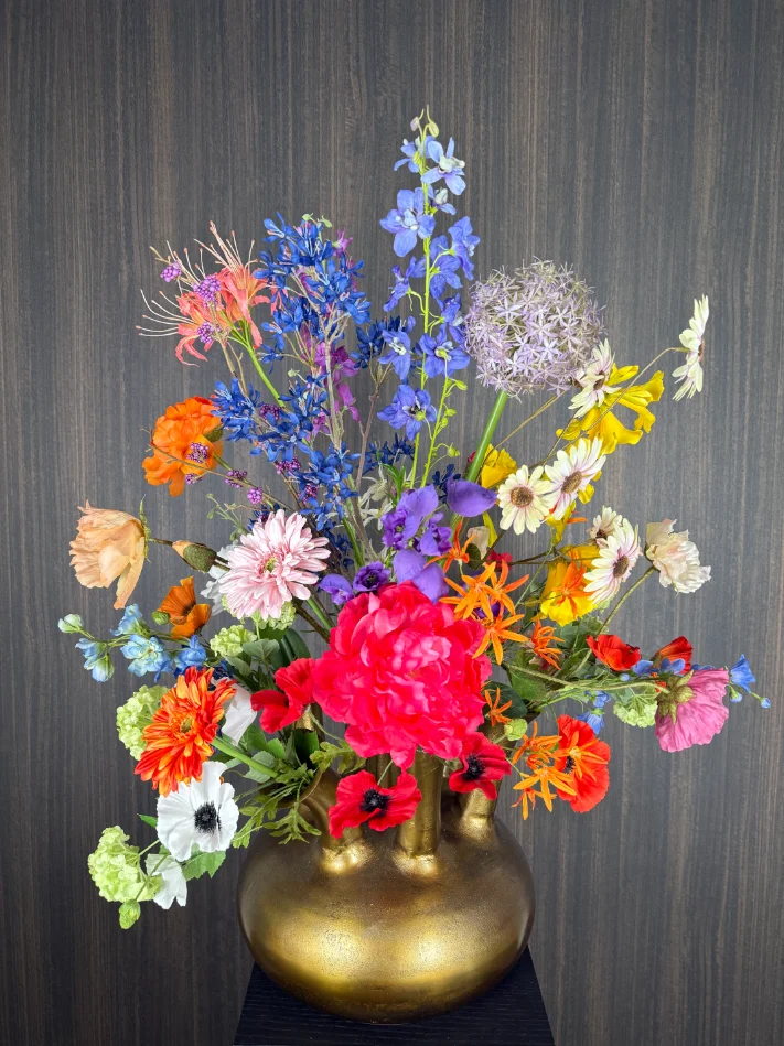 Wij hebben al een paar kunstboeketten voor je gemaakt, speciaal voor in de Toeter vaas en daar is dit eentje van!
