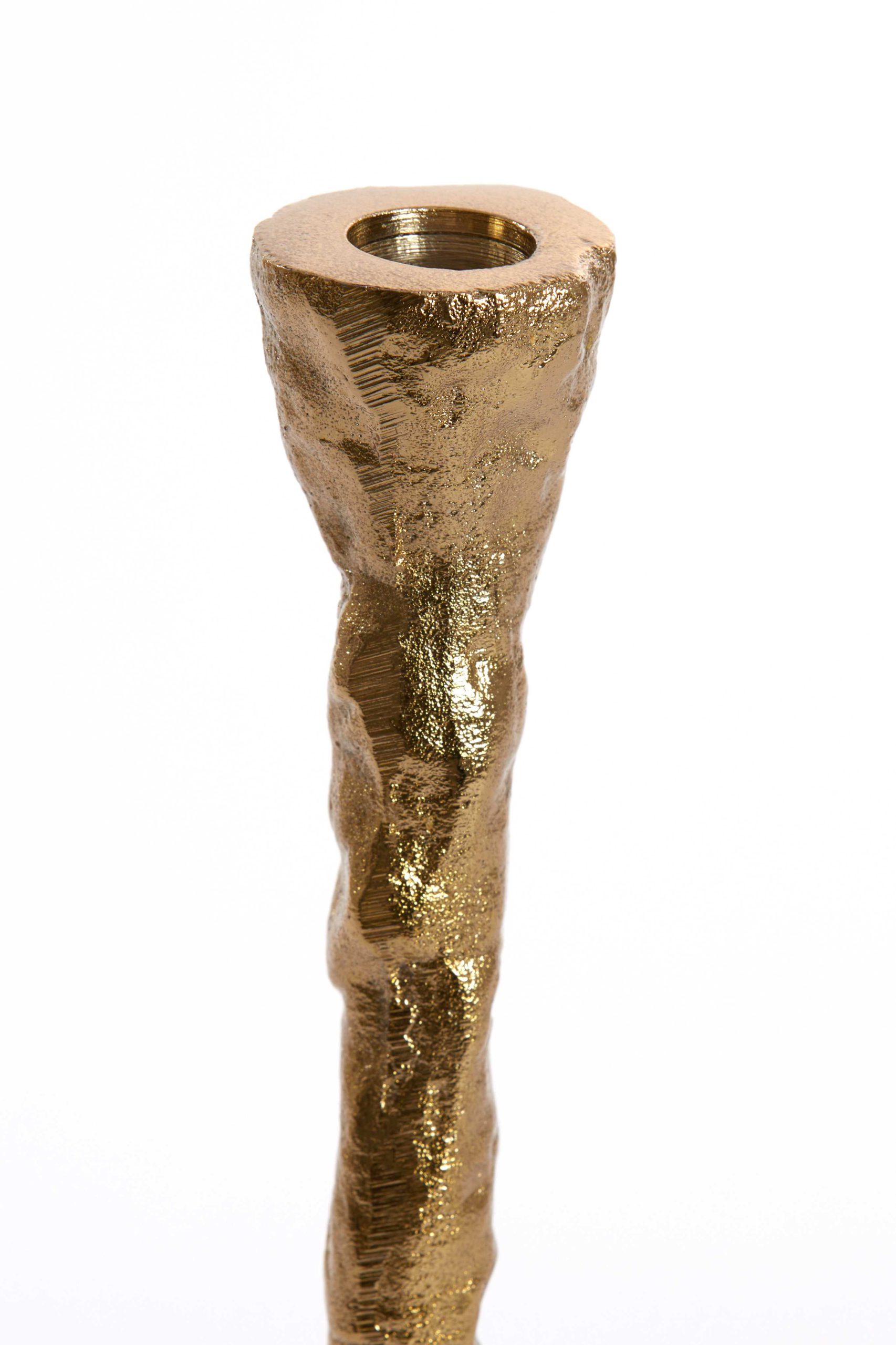 Deze kandelaar is gemaakt van metaal, door het stijlvolle ontwerp en de gouden kleur past het in elk interieur. Voeg een kaars in de gewenste kleur toe en combineer de kandelaren onderling door er een set van te maken. Een eenvoudige manier om meer sfeer te creëren in huis. De kandelaar is verkrijgbaar in verschillende maten.