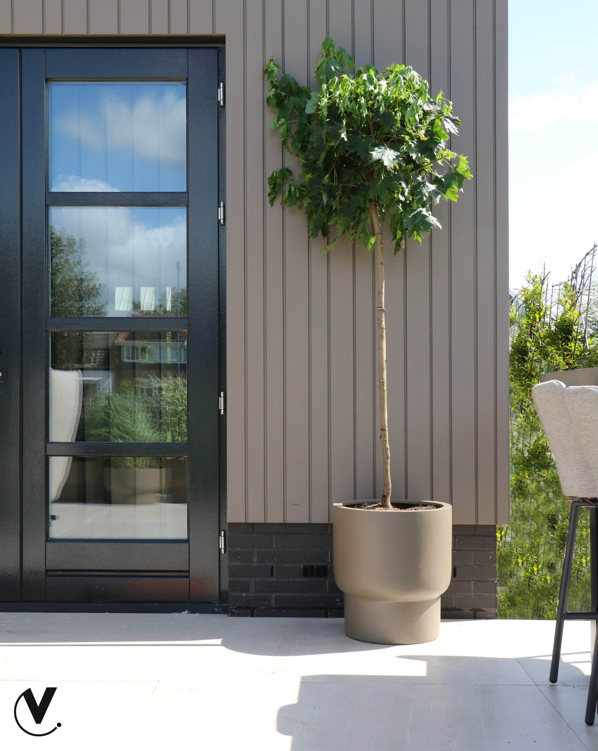 De Rosa bloempot heeft een trendy vormgeving en is gemaakt van fiberstone. De pot heeft een matte afwerking in de kleur taupe, erg leuk voor je favoriete bloemen of planten.