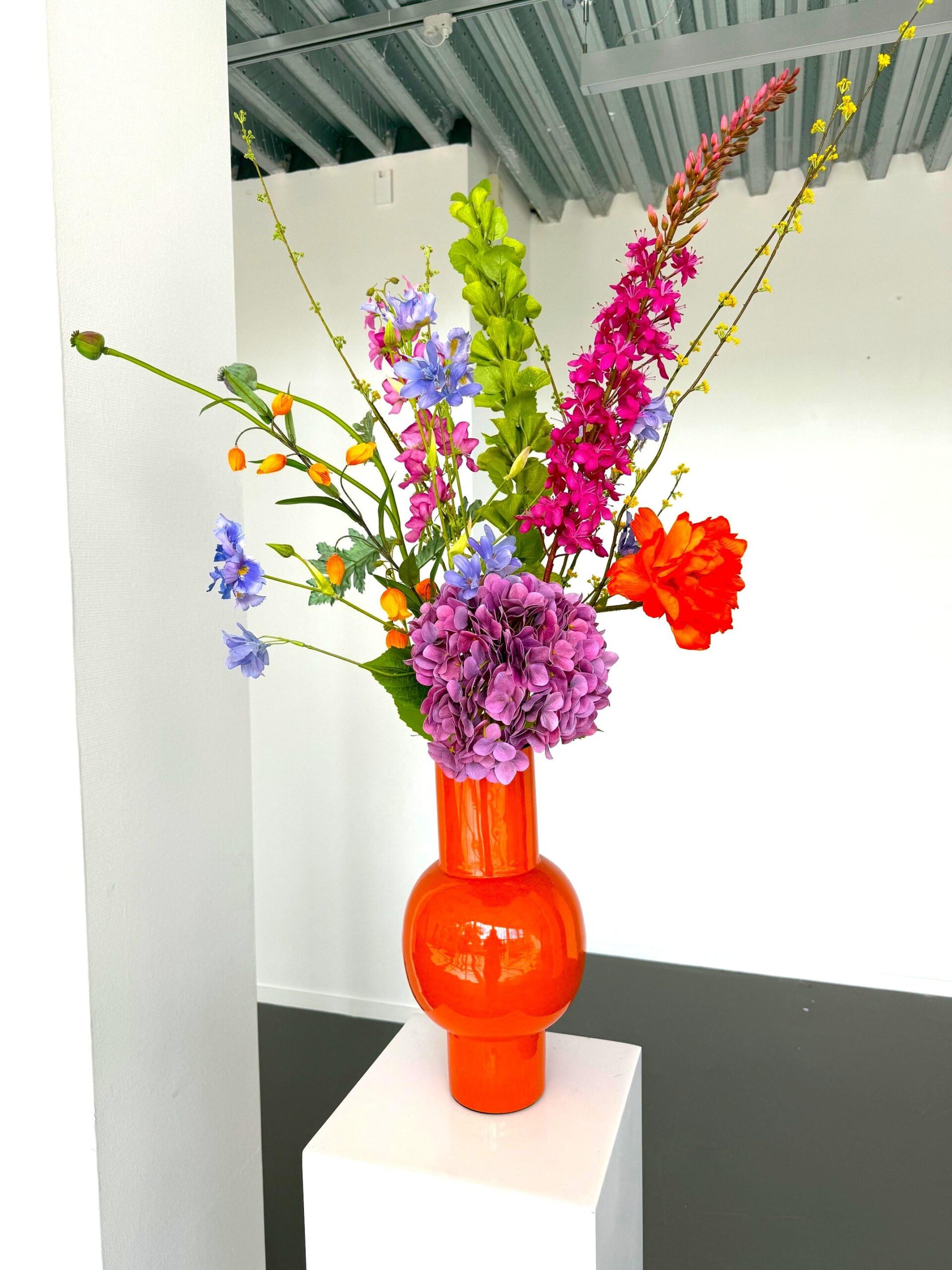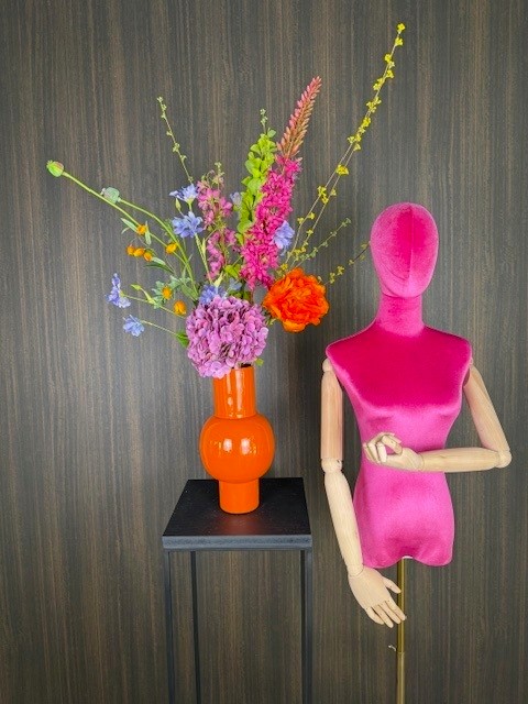 De prijs van dit kunstboeket is zonder de vaas.