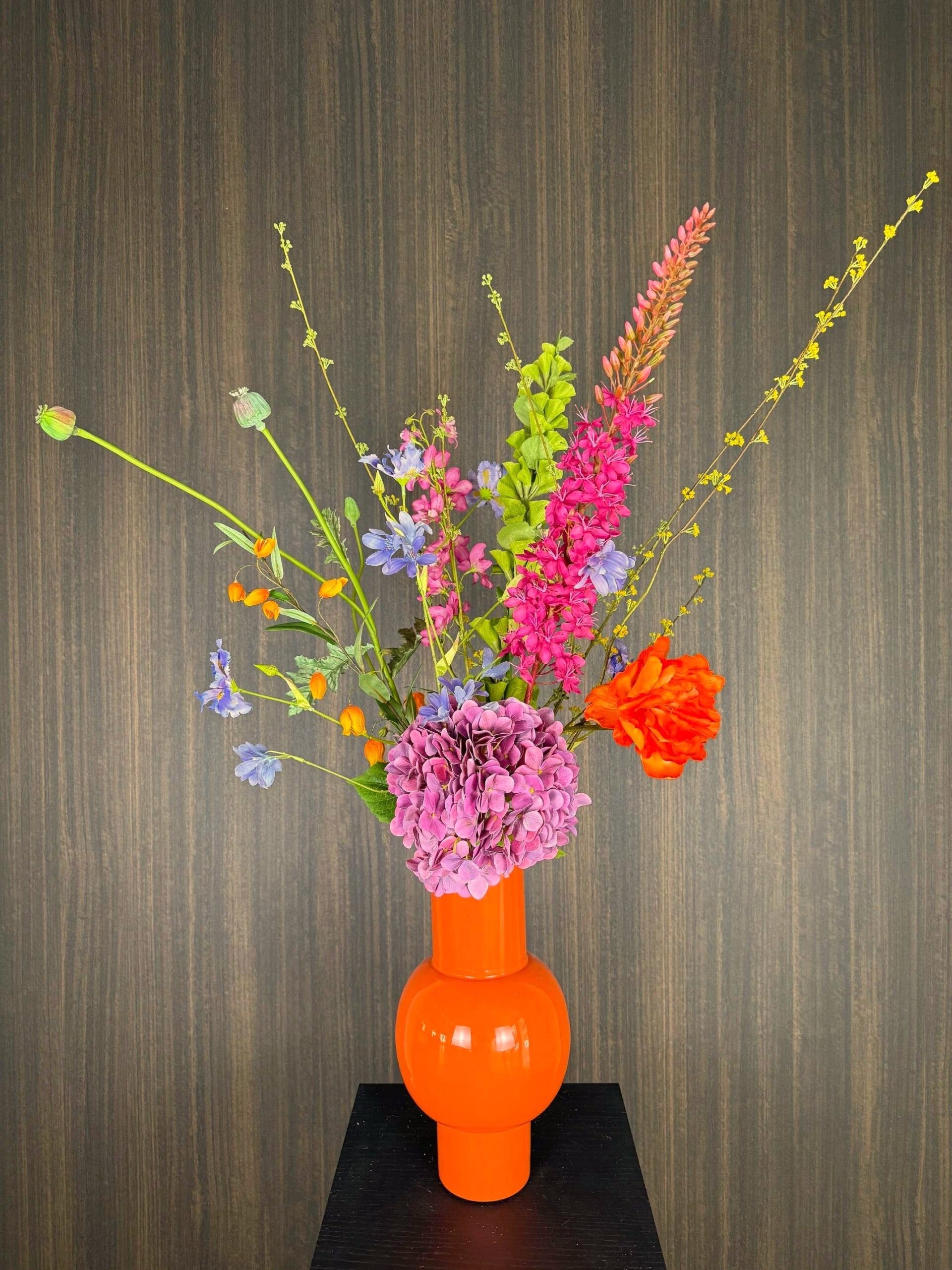 Mooie gecombineerde kleuren geven dit boeket een zeer luxe uitstraling, hier staat echt wat, een blikvanger.
